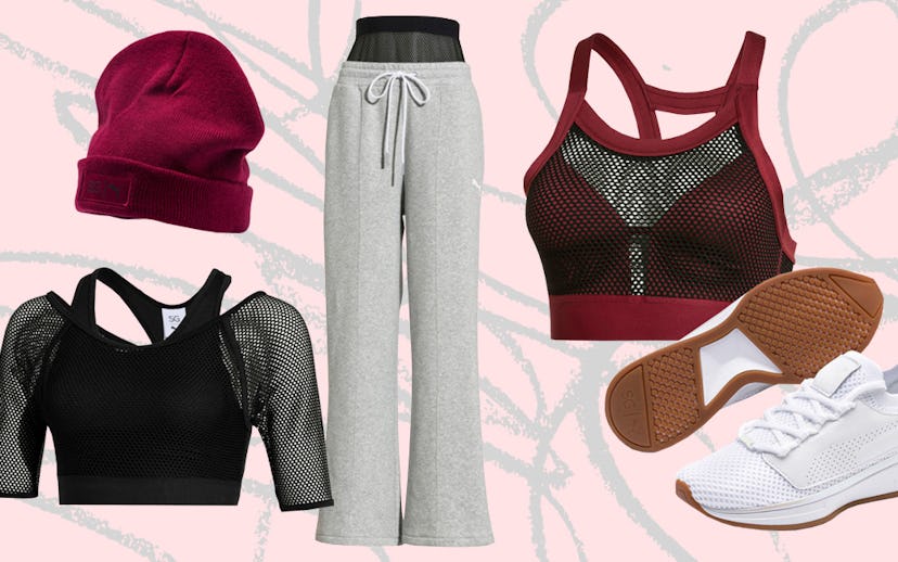 With black, white, and maroon tones, along with a bold fishnet detailing, the collection offers pieces that scream athleisure. The items range from $20 crew socks to $120 black velour jumpsuits, so, even if your 2019 resolutions don't include going to the gym regularly, you can still opt for a look that makes it seem like you do.