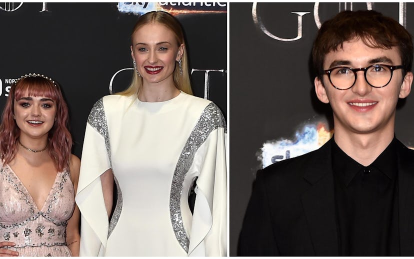 The photo shows Wright looking quite pleased with himself while sitting on a makeshift throne, wearing no pants. As he should be, seeing as (spoiler) his character, Bran, won the Iron Throne this weekend. Williams, meanwhile, is looking way too cool to be involved in the shenanigans, wearing a pair of black sunglasses and staring absently off-camera. As for Turner, she's looking away from her onscreen brother, too, nervously smoking a Juul.