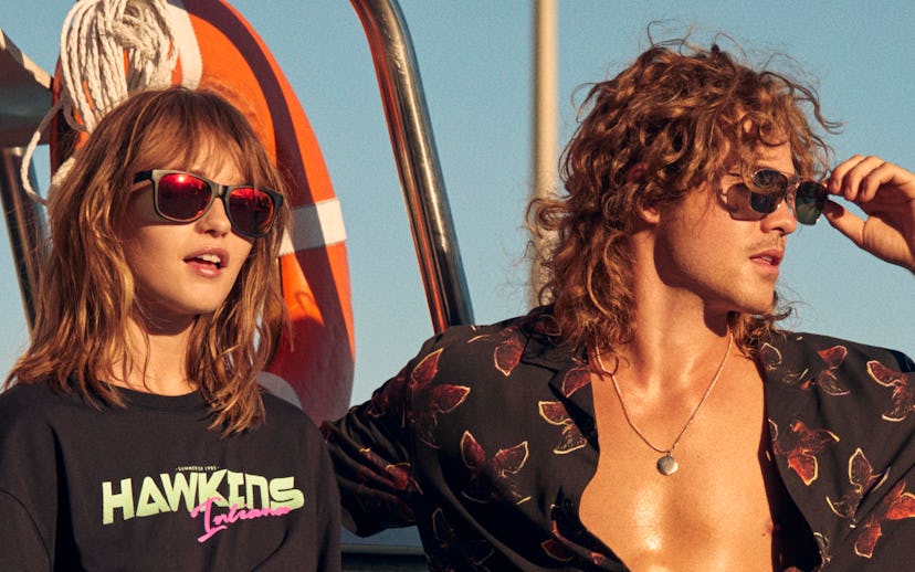 The collection, which was designed by the brand's in-house team, is made to be worn poolside. You'll find quite a few bathing suits, as well as some lifeguard-inspired gear and some pieces repping the city of Hawkins, Indiana and the series itself. The campaign, starring the shows own Billy Hargrove (Dacre Montgomery), is set at a few locations never seen on the show before: The community pool and the town mall.