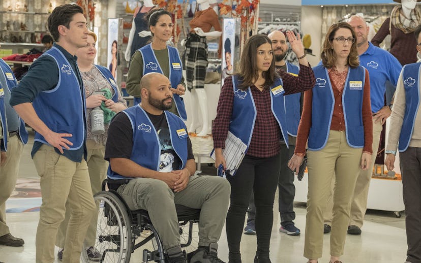 And that's what makes the show different from other series, like Roseanne, that centered around blue-collar families: It's actually representative of America's diversity. But it doesn't make it into a big deal, just the fact of the matter. The protagonist, Amy (America Ferrera), is Latina, but she doesn't wear her culture on her sleeve. It's mentioned and alluded to at points throughout the show, but it doesn't define who she is. This is also intentional. In fact, none of the characters written in the pilot had a specific ethnicity assigned, except for Mateo (who was initially meant to be a Mexican immigrant). Spitzer explains: "The characters all had personalities going into it, but once we cast them, the characters sort of over time changed depending on who was cast and how they decided to play it. In terms of the race, it really wasn't a show about any specific race. I never imagined them as white or brown or anything." What he ended up with, though, is a cast with a range of ethnicities, ages, sexual preferences, and body types—a reflection of who you'd find working at any store, big box or not.