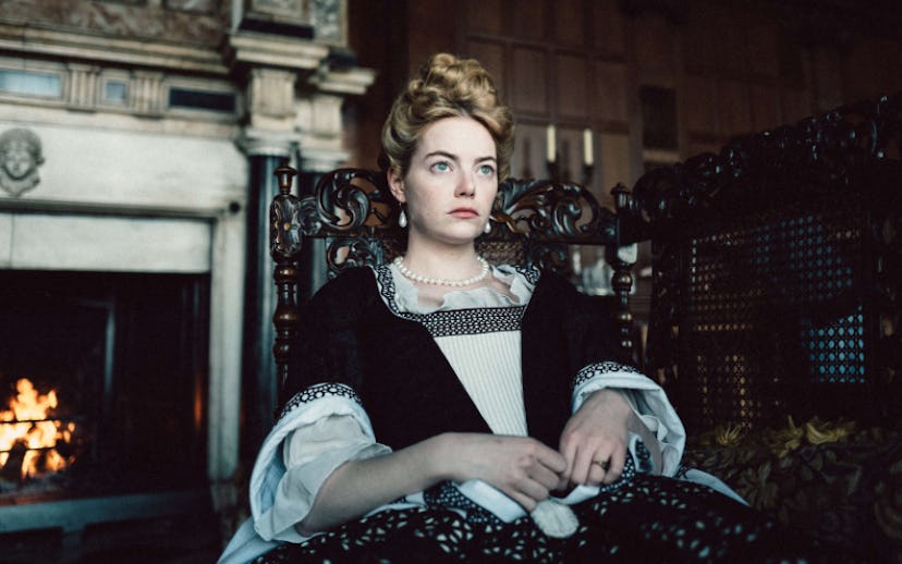 In Stone's new movie, The Favourite, there are actual rabbits—17 of them, to be precise, representing each of Queen Anne's (Olivia Colman) lost children, some "born as blood," the queen says, while others were stillborn or died in early childhood. The Favourite is loosely based on real events, recounting the fall from grace of Queen Anne's most trusted companion, Sarah Churchill, the Duchess of Marlborough (Rachel Weisz), and the accompanying ascendance of Abigail Masham (Stone). One thing that's historically accurate is that Queen Anne did indeed lose 17 pregnancies and children, and was known for being the "childless queen," an epithet that seems particularly cruel considering how much grief she endured surrounding her childlessness.