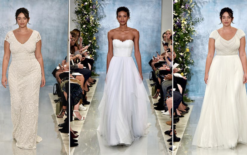 As Don O'Neill, the brand's creative director and the mastermind of one of my favorite bridal collections of all time, appears on the runway to open the show, the crowd goes instantly silent. "Sexy has no size at Theia," he says. "We want to embrace gorgeous women and all of their curves." Coming from him, it doesn't feel "woke," it feels genuine, not least because O'Neill has dressed the likes of Oprah, Gabourey Sidibe, Ashley Graham, Danielle Brooks, and Rebel Wilson on numerous occasions in the past. "We've always designed wedding dresses for plus size brides," he tells me separately, seemingly rejecting any pat on the back for showing and designing for realistic body types. "Now we're just putting them on the runway where they belong."