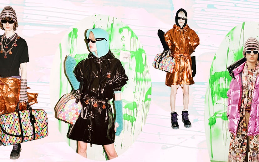 The result? Metallic candy-colored puffer pieces—Ragazzi's take on the brand's trademark—as well as "laminated"-looking materials, graffiti-sprayed accents, intricate collage prints, plus the usual streetwear staples like hoodies and tees. This collection, the project's second, is much larger than Ragazzi's first, with a "precise inspiration this time: breaking Moncler's simplicity," he tells us.