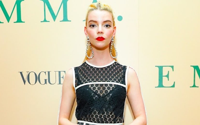 On Tuesday night, Anya Taylor-Joy attended the screening of Emma in New York and she's steadily becoming a red carpet star to watch, as her latest outfit proves: She wore a matching top-and-skirt lace set from Loewe with a pair of long, tear-drop-shaped rhinestone earrings by Rainbow Unicorn Birthday Surprise.