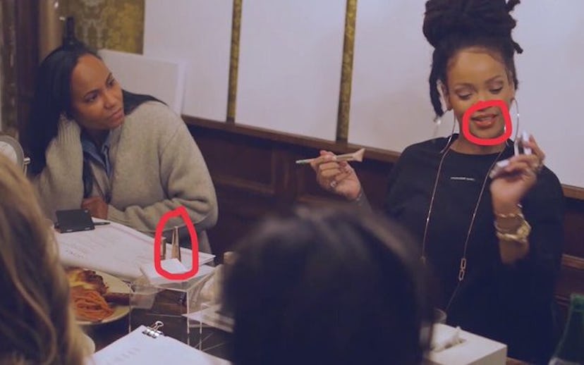 + It appears that Rihanna may have a brand-new liquid lipstick in the works. Popular makeup Twitter account GlamourGoals tweeted a new photo of the bad gal at a table with what seems to be either a new nail varnish or liquid lipstick for her Fenty beauty line. If it's the latter, we hope it will be the glossy sister of Rihanna's Riri Woo shade in collaboration with M.A.C. See viral tweet below.