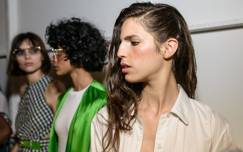 Adam Selman wants to remind us that America has always been great. His spring/summer 2018 runway show was a whirlwind of denim motifs, unexpected takes on workwear, and clean, sophisticatedly cool beauty. "He wanted it to feel a little tougher and cool this collection around," James Pecis, the show's hairstylist, told us backstage. "Everything was starting to look too cute."