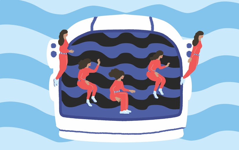After a few get-to-know-you exercises, it’s on to the multi-axis trainer. Meant to simulate what it might feel like to spin out weightlessly in space, the trainer is a chair within a ring within a ring within a ring; it reminds me of a futuristic version of da Vinci’s Vitruvian Man. The initial release of the chair is comforting, like being rocked in a hammock. But then Davis kicks on the power, and it’s 45 seconds of flips and twists. Yet there’s no nausea—your stomach stays in the same place the whole time. It’s slightly disorienting to step down, but no worse than wearing a pair of new glasses. Still, sleep feels very earned come nighttime.