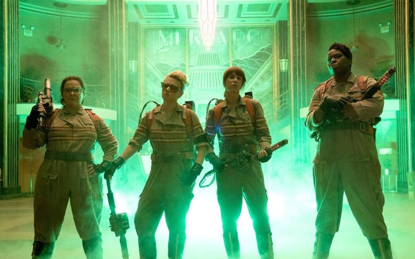 It’s been nearly two years since that story broke, and Sony’s eagerly anticipated reboot is about to hit theaters with Kristen Wiig, Melissa McCarthy, Kate McKinnon, and Leslie Jones rocking those tan jumpsuits and proton packs. For Sony, the move made a lot of sense. Not only was it a way of justifying a reboot by putting a fresh spin on the original which featured four men in the lead roles, but it also meant that the studio could capitalize on the wave of girl power that’s been sweeping through Hollywood. Thanks to some long-overdue conversations about gender equality in the movie industry—and one very powerfully worded essay by Jennifer Lawrence—the idea that women are just as viable and valuable as movie stars as their male counterparts has begun to take hold in a big way.