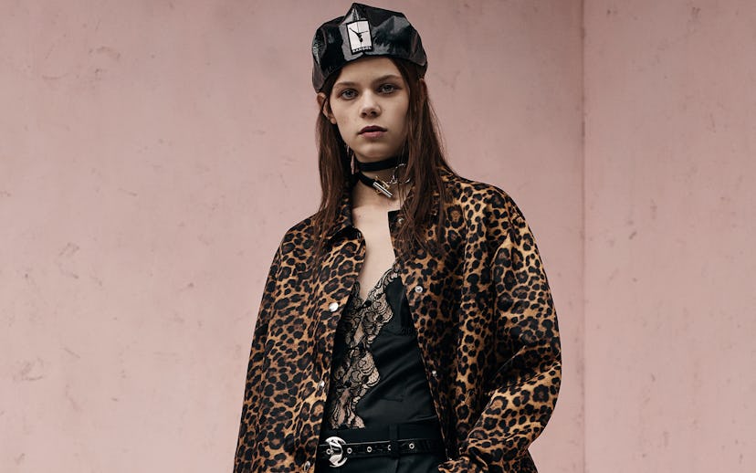 While our fondest of memories of Kangol may be of that quintessential bucket hat, the brand’s core design is actually the newsboy-style Peebles cap—a style once a favorited by some of the biggest ‘80s rappers. Wang, inspired heavily by ‘80s hip-hop culture for his resort 2017 collection, reimagined the classic design in true Alexander Wang fashion. Available in two styles, black patent leather or leopard print nylon, the hats are stamped with a “Flipgirl” patch, showcasing the upside down pole dancer than makes an appearance throughout the collection. Both styles encapsulate the era in a modern, high-fashion way.