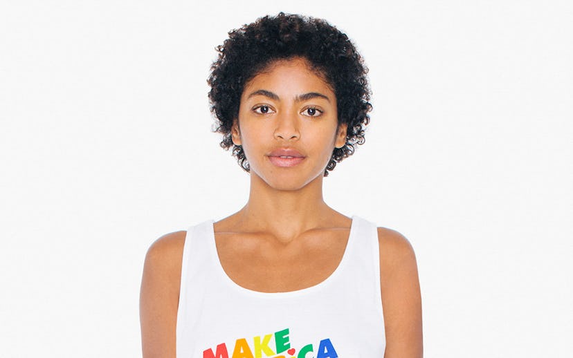 The line features tees, tanks, and a tote, as well as a dad hat that has the same font as Trump's infamous cap. Last month, an "America Was Never Great" parody hat angered the internet after a photo of 22-year-old Krystal Lake wearing it at work went viral. Surely some Trump supporters will be angry about the campaign, but with so much love and positivity surrounding the collection, it can only be used to propel conversation about universal acceptance.