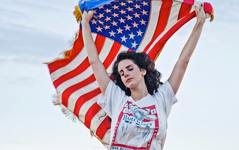 While I'm probably not going to ditch ponytails for pompadours or donning flower crowns any time soon, the singer's wardrobe of cutoffs, American-inspired tees, and '60s dresses is basically a cooler version of how I dress now. So if you need me this weekend, I'll be busy watching Del Rey's addictive music videos (especially "Ride") for hours getting inspiration...and wearing these adorable American flag socks. Gotta put my best, Lana-fied foot forward!