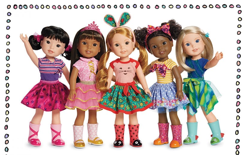 With a name that may or may not have been created by your grandmother with a needlepoint addiction, the company describes WellieWishers as "a sweet and silly group of girls who each have the same big, bright wish: to be a good friend." (Apparently, the Wellie is in reference to the dolls' rainboots.) They're being marketed to children between five and seven years old, so they should be attracting a slightly younger audience than American Girl dolls do. At $60, they're a much more affordable option too. Of course, that does come with some drawbacks—they don't have eyes that close (which also means that they won't inevitably grow wonky when you lie them down), have plastic bodies, and are smaller than American Girl dolls. The company isn't offering customizable versions of them either, which, in my remembrance of American Girl dolls, was very much the appeal of getting one in the first place.
