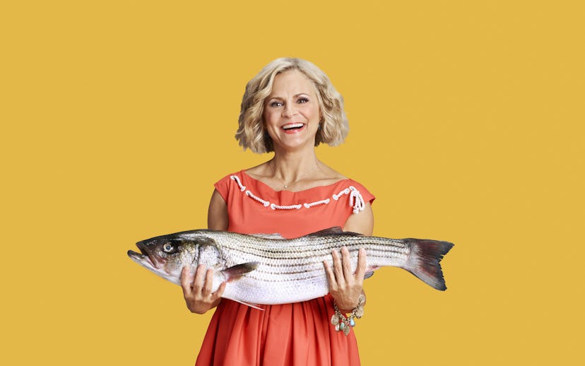 At Home With Amy Sedaris is the long-awaited television component to Sedaris’s books. The new series, that premiered yesterday on TruTV, has its star parodying Food Network and HGTV programming with her tips for how to gut a fish, entertain businessmen, or cook without pots and pans. These things might sound banal, but with Sedaris and her special guests like Cole Escola, Christopher Meloni, and Rachel Dratch, boring activities take on a new life thanks to dark humor and wacky wit. Part of Sedaris’ overall appeal, and what makes her different from most other television food personalities, is that she’s not looking to sell anyone on anything—even herself.