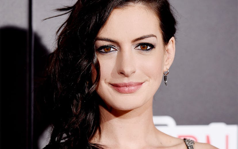 Hathaway complimented the glam rock-inspired dress with a dark, smokey eye and side-swept hair. The entire look is a fashion risk that's an exciting departure from Hathaway's usually safe red-carpet wardrobe. Needless to say, if she was our intern, we would definitely hire her.