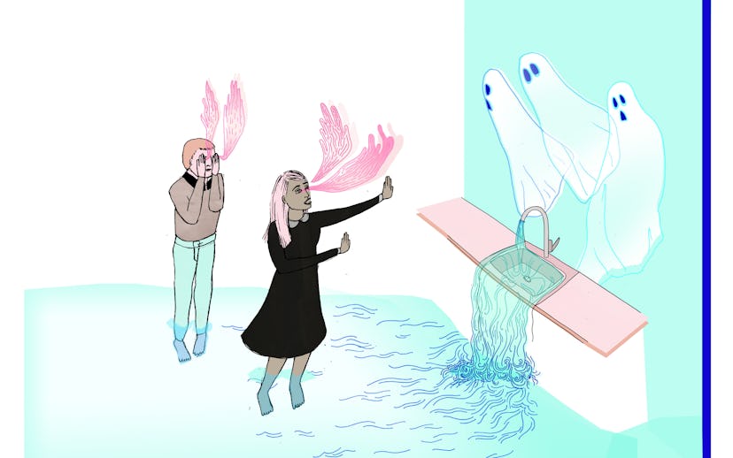 "A friend's ceiling caved in from water buildup, thus flooding the entire apartments and leaving huge holes to the floors above. Two seemingly straight-edge upstairs neighbors went on a psychedelic bender, turned on all of their water faucets to 'protect them from ghosts' (yes, this is their reasoning) and flooded their apartment and two floors of other apartments on purpose. It was like an anti-drug commercial."