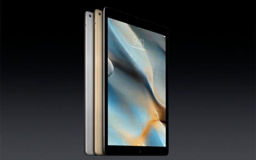 Apple’s second big announcement is pretty stellar. It’s the iPad Pro and it’s the biggest iOS device ever, clocking in at a hefty 12.9 inches and 5.6 million pixels. The MacBook Pro doesn’t even have that kind of display, making your Netflix and Amazon Prime binging extra crisp-looking. (Fun fact: This iPad has 360 times the amount of pixels as the first iPad.) Miraculously, even though it’s a much larger device, it weighs just a pound and a half. Apple CEO Tim Cook called it the "biggest news in iPad since the iPad.”