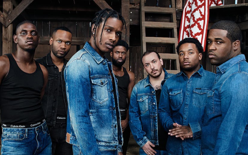 A$AP Rocky, A$AP Ferg, A$AP Nast, A$AP Twelvyy, A$AP Ant, A$AP Lou, and A$AP J. Scott all don the latest from Calvin Klein Underwear and Calvin Klein Jeans in the Willy Vanderperre-lensed photos and video, discussing their “too cozy” lifestyle and playing on the campaign slogan, “Our Raf, our Yams,” a shout-out to Calvin Klein's current designer Raf Simons and the late A$AP Yams. (As Fashionista.com points out, A$AP Bari, one of the founding members of the crew, is not featured, presumably because he is currently being sued for sexual assault.)