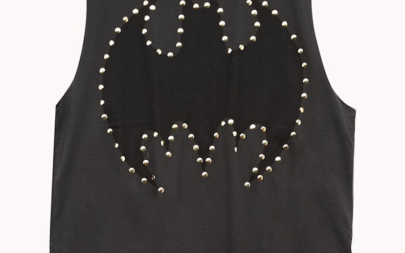WHY: It's basically October, which means Halloween season is finally here! But even if you haven't finalized your night-of outfit quite yet, at least you can get in the spooky spirit now--without looking like you've stepped out in costume way too early. This studded tank is from Forever 21's new Bats and Cats capsule line, and is going into our tee rotation pretty much immediately. So whether or not you're into the idea of Ben Affleck as The Dark Night, this is one new Batman development that everyone can agree on.