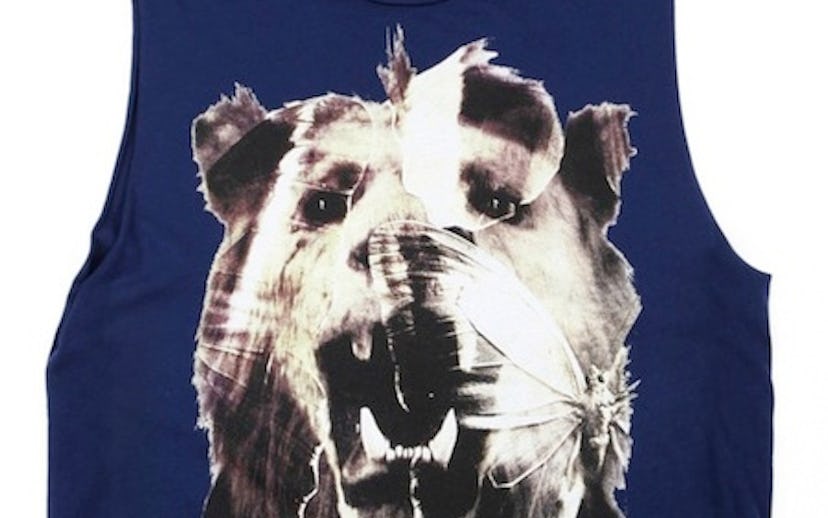 WHY: I just returned from a week in Wyoming, where I spent my days doing basically the opposite of what I do everyday in New York City: hiking, biking, and horseback riding in the mountains. My vacation activities weren't the only thing different–so were my accessories. I traded my vintage Gucci bag for bear spray to take with me everywhere I went (yes, bear spray is a thing…). Thankfully, I didn't have to use it–it's essentially mace for grizzlies–but now that I'm back in the city, I can at least remember my outdoorsy stint with this t-shirt. Featuring designs by English artist Dan Mountford, this navy muscle tee is part bear face, part butterflies, and not nearly as scary as the real thing. Obsessed.