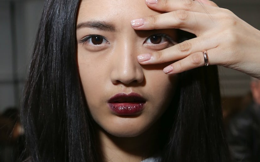 During Fashion Week, our days are spent stalking the beauty trends that everyone will be sporting next summer-- but duh, that's no reason to forget about the ultimate makeup staple for fall 2014. Enter the cranberry lip. From Rebecca Minkoff to Tibi to Carolina Herrera, designers opted for seasonally approps berry-inspired lipcolors. So whether you want to take things to the extreme with deep purple a la Lorde or keep it natural with a sheer plum, check out the best 10 ways to go dark below.