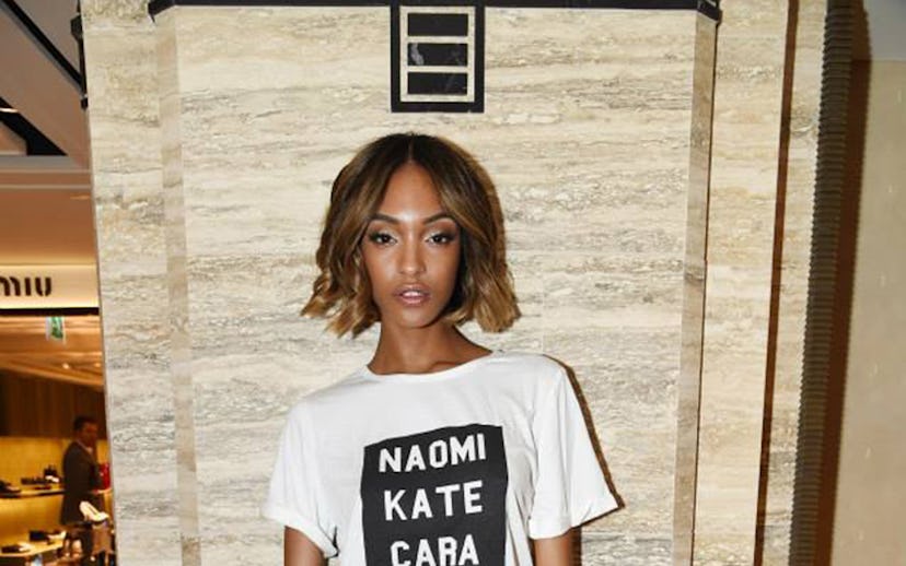 Luckily, we have supermodels like Jourdan Dunn to show us how it's done. At Harrod’s Shoe Heaven Launch Party in London, Dunn taught us that the easiest way to get the quintessential off-duty model vibe is by pairing a slouchy graphic tee (bonus points if it shows off your mentors and current model BFF), a badass leather skirt, and a cozy pair of fur-lined boots. We don’t know about you, but we know what we’re wearing this weekend...