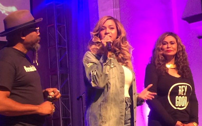 Beyoncé wasn't about to stand idly by while people in her hometown of Houston struggle to rebuild their lives after Hurricane Harvey. Yesterday, the singer visited St. John’s Church, the very congregation she was a part of as a child, with her daughter Blue Ivy, mother Tina Knowles, and Destiny's Child member, Michelle Williams. Taking the stage on behalf of her foundation, BeyGOOD, Beyoncé told survivors, "Y'all are my family. Houston is my home. I thank God that you're safe, your children are safe. I think that what really matters is your health and your children and your family. I just wanna say I love you. I’ve been blessed so that I can bless other people and I ask of God to continue to do that for other people." The crowd appeared to be overjoyed by the singer's presence, cheering as she called Houston her home and shouting messages of love to her. You can check out a short video from Beyoncé appearance below.