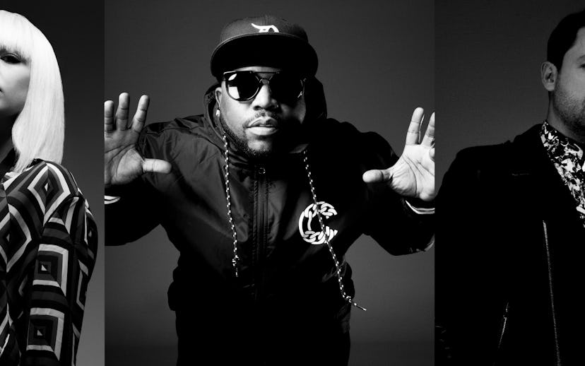 This is not hyperbole. Nor is it a scene from a disaster movie filmed at the opulent club in New York City’s Meatpacking District—though the pounding rain and thunder outside have lent a certain cinematic quality to the evening. About 150 or so people have gathered to celebrate the release of Big Grams (the eponymous collaborative project between hip-hop groundbreaker Big Boi and electronic duo Phantogram), and the music is so loud that the building is actually vibrating. Not one of the head-bobbing partygoers seems to mind—especially not the woman twerking by the bar.