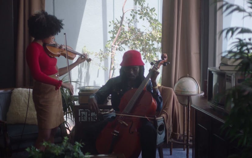 The video opens up with Hynes running through a palm tree-lined street sans shirt. A couple of scenes later, he’s shown playing piano with actor Amandla Stenberg. And, later on, the two partner up to play the violin and cello together. Filling out the rest of the videos are serene shots of everyday people sharing intimate, gentle moments.
