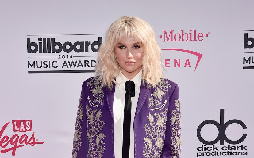 Kesha paid tribute to Prince in this Gucci purple embroidered suit.