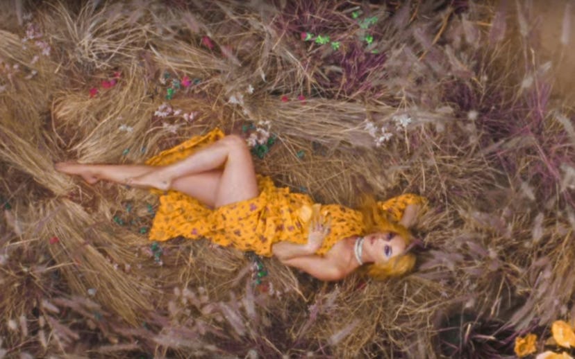Directed by Emil Nava, the music video is set in a hazy, colorful utopia. Pharrell sings from a rowboat in a small, shade-shifting pond. Perry lounges in a golden flower field that perfectly matches her hair and sundress. Big Sean sits on his throne in between two bright red parrots. Harris even makes an appearance, playing the guitar in a floral print button-down.