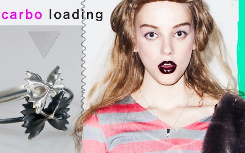 For their Spring/Summer runway show, Dolce & Gabbana took cues from Southern Italy with the label's bold dresses and tomato-printed blouses. They paired the clothes with another Italian staple- pasta. Molding enameled farfalle with crystal and gold into drop earrings and pairing little pasta bowties with a basket-weave bag, they've transformed our dinner staple into seriously luxe accessories.
