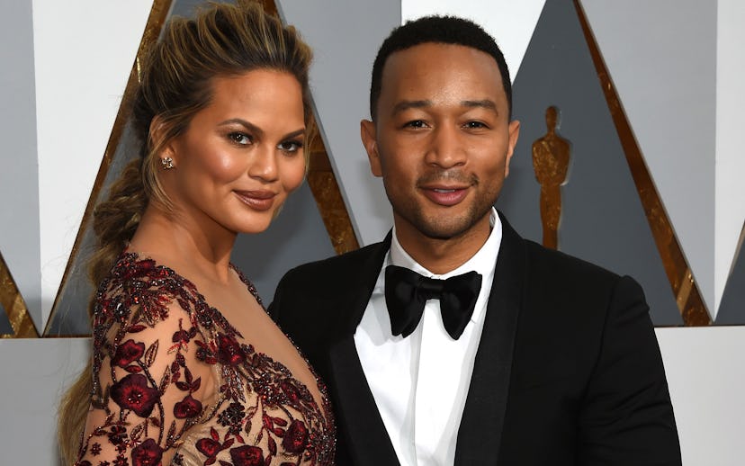 Whether or not you agree with the methods that Chrissy Teigen and John Legend chose in regards to their pregnancy, there's no denying how blessed this baby is going to be. Over the weekend, the soon-to-be parents threw a royal-themed baby shower at the Material Good jewelry store in New York City. With roughly one month to go, Teigen has been thriving throughout this pregnancy. At the party, she looked gorgeous in a Stella McCartney "Kenisa" trench coat and Stuart Weitzman "Nudist" sandals.