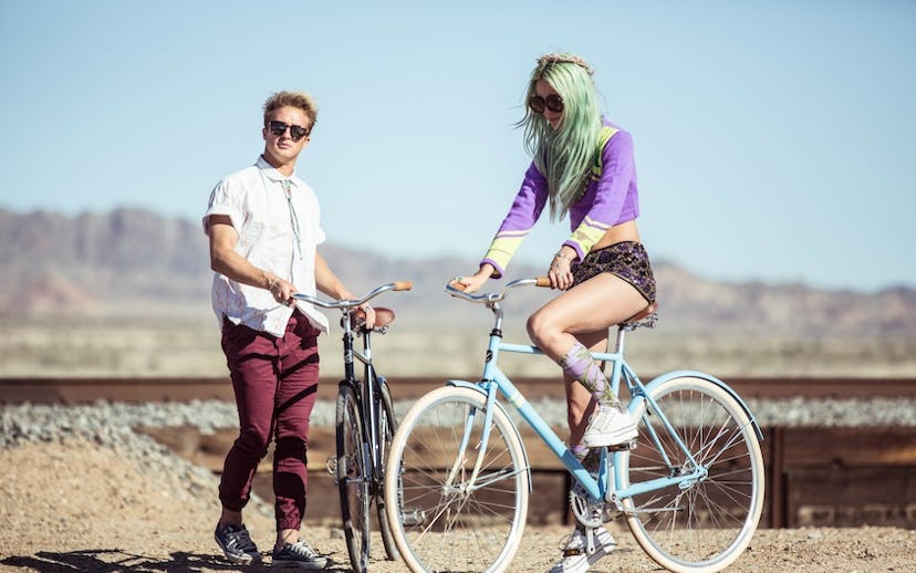 The movie features models clad in shorts and tees with their City Cruiser bikes, as they adventure through a "cycledelic" landscape of sundrenched candy-colored mountains.