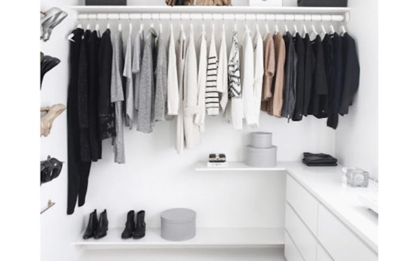 Start by narrowing down your warm-weather wares. Pull out your summer items and create three piles: keep, donate/sell, toss. If it's a transitional piece you can wear into fall or it's something you'll wear next year, keep it. If it's fast fashion that you feel has been exhausted or you haven't worn it in the past three months, throw it into the donate/sell pile and take it to a charity or consignment store (check out our tips for consigning here). If it's raggedy or in otherwise poor condition, toss it.
