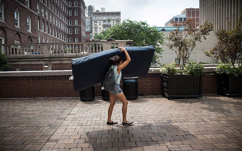 In 2012, then-Columbia University student Emma Sulkowicz accused student Paul Nungesser of raping her on her dorm room mattress on the first day of classes their sophomore year. The university found Nungesser not responsible for the alleged crime, which outraged Sulkowicz and led her to famously carry around her 50-pound mattress every day in what became a performance art piece called "Mattress Performance (Carry That Weight)." The university gave her credit for the performance as her senior art thesis, which Nungesser sued the university for on the grounds that Columbia was supporting an "outrageous display of harassment and defamation." Now, according to the New York Times, Columbia has finally settled with Nungesser for an undisclosed amount and publicly apologized to him.