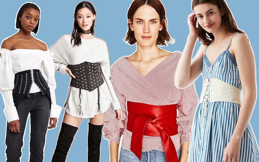 Now that social media’s obsession with this strange, probably not-too-safe “favorite” of the sisters has faded, it seems like more fashionable versions (aka ones you can actually breathe in) have begun popping up everywhere. The corset belt ruled the spring 2017 runways and is shaping up to be the biggest street style trend of the season. With iterations of it making its way to the catwalks of Loewe, Isabel Marant, Balmain, and more (and the recent fall 2017 runways), it’s safe to say that this trend isn’t going anywhere. And, to be honest, we’re okay with it. We love how easily and effortlessly the belts can take any old look to an entirely new leve and flatter any body type.
