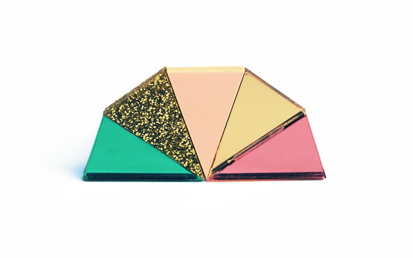 When it comes to traveling back in time to a '70s disco club, you can pretty much expect a whirlwind of color, glitter overload, and a spinning ball made of mirrors to await you as you step out of your DeLorean. If you could put all of that together into a little gobstopper sized gem to take back to 2014 with you, it would totally be this ring. It looks like someone hit up a discotheque, stomped a piece of the stage with their platforms and mashed it up with some leftover glitter from the dance floor, to make a rad and completely wearable piece of history--but if you were thinking it looks more like half of the wheel from The Wheel of Fortune, that would also be correct.