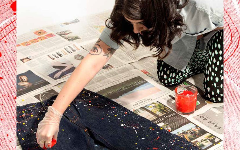 As a fashion editor and DIY enthusiast, I love to create my own take on trends. Multi-colored paint-splatter jeans have been on my mind for a while now, especially after seeing Denim & Supply Ralph Lauren’s version again this season. So, I decided to make a pair, and it turned out great. Here’s how it’s done.