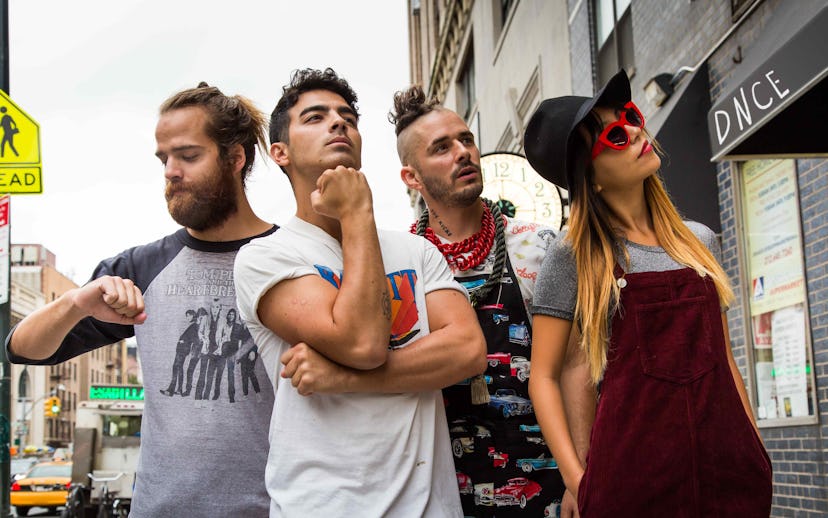 The project, which was a few years in the making, brings Jonas together with badass guitarist JinJoo Lee, bassist/keyboardist Cole Whittle, and drummer Jack Lawless. If you haven’t already heard their debut single, “Cake By The Ocean,” we could quickly sum it up as a sure-fire alternative dance song, replete with chants, charming quips, and upbeat instrumentals. But if you really want to get into it, it’s actually one of the more interesting pop songs of the year. Riddled with innuendos—”cake by the ocean” is a euphemism for sex by the beach—and electric ’70s-esque riffs, the song is both intricately layered and repetitive enough for it to catch (and keep) the attention of those whose who have watched nothing but Vines for the past few years.