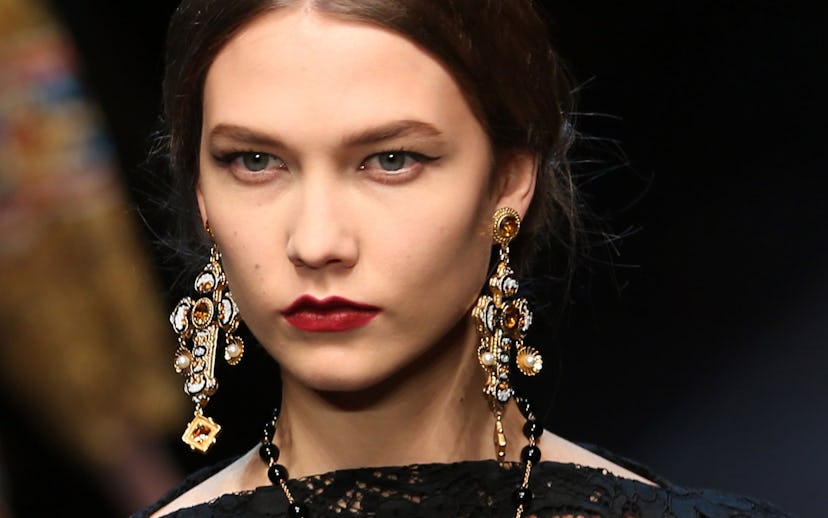 Lorde may sing, "And we'll never be royals," but we've figured out a way to look like ones this holiday, no Cristal or Maybach needed--just a little inspiration from the Dolce & Gabbana fall '13 show. Karlie Kloss & Co. took to the runway like they were princesses visiting from Verona, crowns perched above flawless skin, regal cat eye flicks, and Bordeaux lips (all dreamed up by makeup artist Pat McGrath).