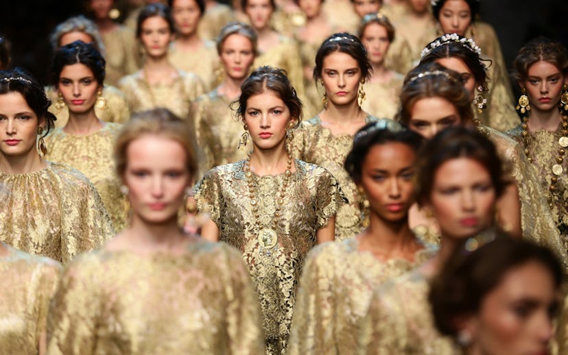 Although the spring '14 Dolce & Gabbana show was inspired by ancient Sicily, the beauty look was anything but dead. Instead, makeup artist (and Creative Advisor) Pat McGrath made the models look like they just came back from a day wandering ancient ruins and doing a little sightseeing. The key was using a combination of "warm golden tones" and "rich red accents."