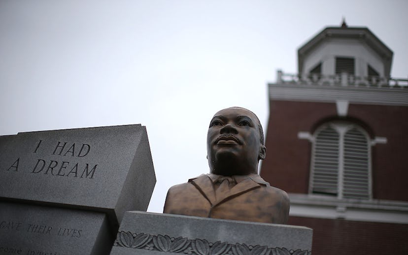Flanked by Omarosa and presumptive secretary of Housing and Urban Development, Dr. Ben Carson, Trump staged this gathering ostensibly to celebrate the essential contributions of black Americans to our society. Instead, Trump used this opportunity to rail against the media's unfair treatment of him—specifically when a reporter erroneously said that Trump had removed a bust of Martin Luther King Jr. from the Oval Office. The reporter immediately apologized when his mistake was revealed. Many days later, Trump, rather than focus on King's great legacy, harped on the incident as a revealing microcosm of the insidious problem of "fake news."