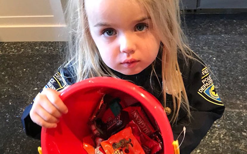 Donald Trump Jr. is an idiot who doesn't understand sharing or grammar, as evidenced by a tweet he fired off yesterday that I'm sure he thought was very funny. "I’m going to take half of Chloe’s candy tonight & give it to some kid who sat at home," Trump Jr. wrote, along with a photo of his daughter looking like she wants to run away and never look at his dumb face again. "It’s never to early to teach her about socialism."