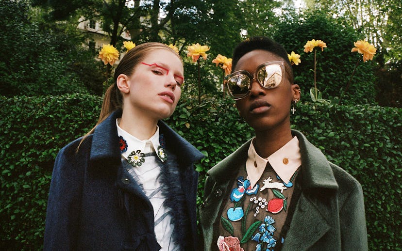 In the following fashion story, director Sam Shannon and photographer Kate Owen were inspired by what they call "eco-sexuality," namely, the way one can find nature romantic or sensual. “We’re pushing the idea that plant life in fashion is more than just a background element for beauty or props, and that it can play a more prominent role visually, as well as sexually,” they say. Think: flowers tucked into pants, bras, and pockets—or, yes, worn on the head (though without an ounce of festival vibes)—and, of course, printed florals. The result is fresh and modern, yet dreamy.