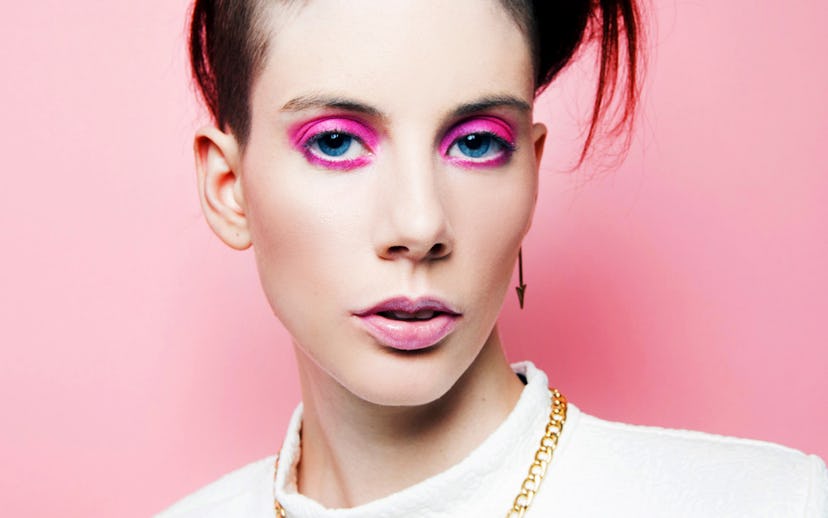Got a fear of pink eyeshadow? Now's the time to get over it—especially once you see how cool it can look. This is pretty much a one-product look: Clarissa used her index finger to apply the hot-pink shadow on the eyelids up to the crease, intentionally being a little bit messy with the color, and then used her pinky to bring it across the lower lash line. "You'll get a rocker-chick vibe if you don't worry about being precise," she says. Skip the eyeliner, which would take away from the vibrancy of the eyeshadow, and instead pile on some mascara. Then go find someplace with a lot of foot traffic and lean casually against a wall: We're certain you'll end up on a street-style blog in no time.