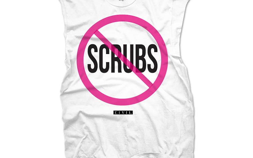 Let's face it, there are plenty of times in your life that you've been hollered at by a dude hanging out the side of his best friend's ride, and there's no better way to relate to the terrible situation than by listening to TLC's '90s hit "No Scrubs". That's why this No Scrubs Muscle Tee by Civil Clothing is the best way to wear your heart on your (sleeveless) sleeve. Yes, the time has come where we've finally had to resort to literally writing it on our face (or shirt)--"No, I am not interested."