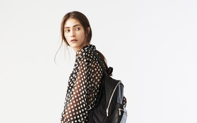 You needn't succumb to kiddie backpack syndrome--a leather knapsack paired with an airy blouse and slides is the grown up way to carry everything on your back.