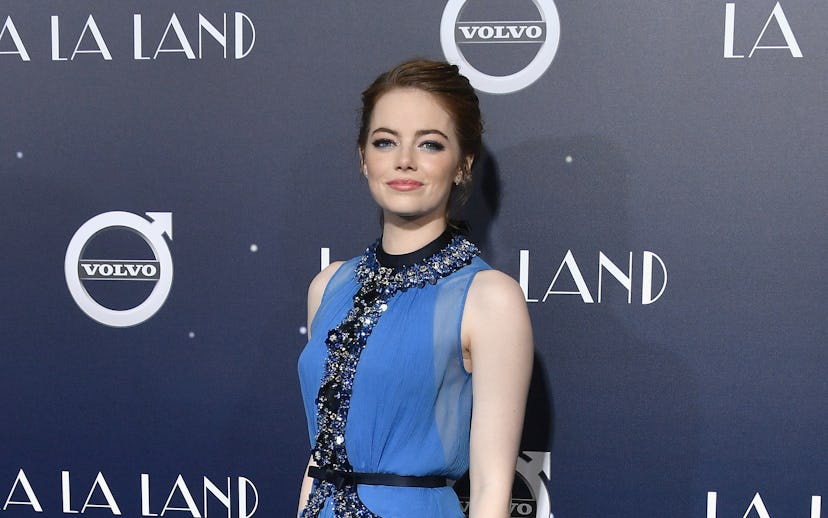 Last night at the La La Land premiere, Emma Stone wowed us with more than just her acting (and singing and dancing). The actress rolled up to the red carpet in what was probably the prettiest cerulean Prada dress we’ve ever seen, complete matching gemstone embellishments from neck to bodice. However, as bedazzled as her gown may have been, we couldn’t keep our eyes off her eyes.