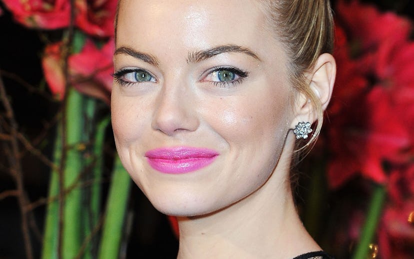 Stone makes a great style crush because she dresses girly, but not too girly. She's known to pair a sweet party dress with a minimal jewelry or layer a white T-shirt underneath a cocktail dress to tone down a cutesy look. She's also the queen of pink lipstick, which we can tell you how to do, but has also mastered the art of the nonchalant updo, something we desperately need her hair stylist to tell us how to get ASAP. (Hear that, Mara Roszak? We need you!)