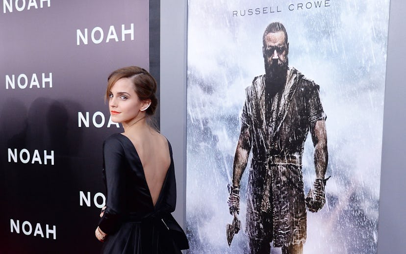 We got to see this more refined side of Watson at the New York City premiere of Noah, where she donned a dramatic black satin Oscar de la Renta gown, Jennifer Meyer rings, and pointed-toe pumps. Her orange clutch and matching lip served as just the right amount of color for an otherwise sophisticated look.